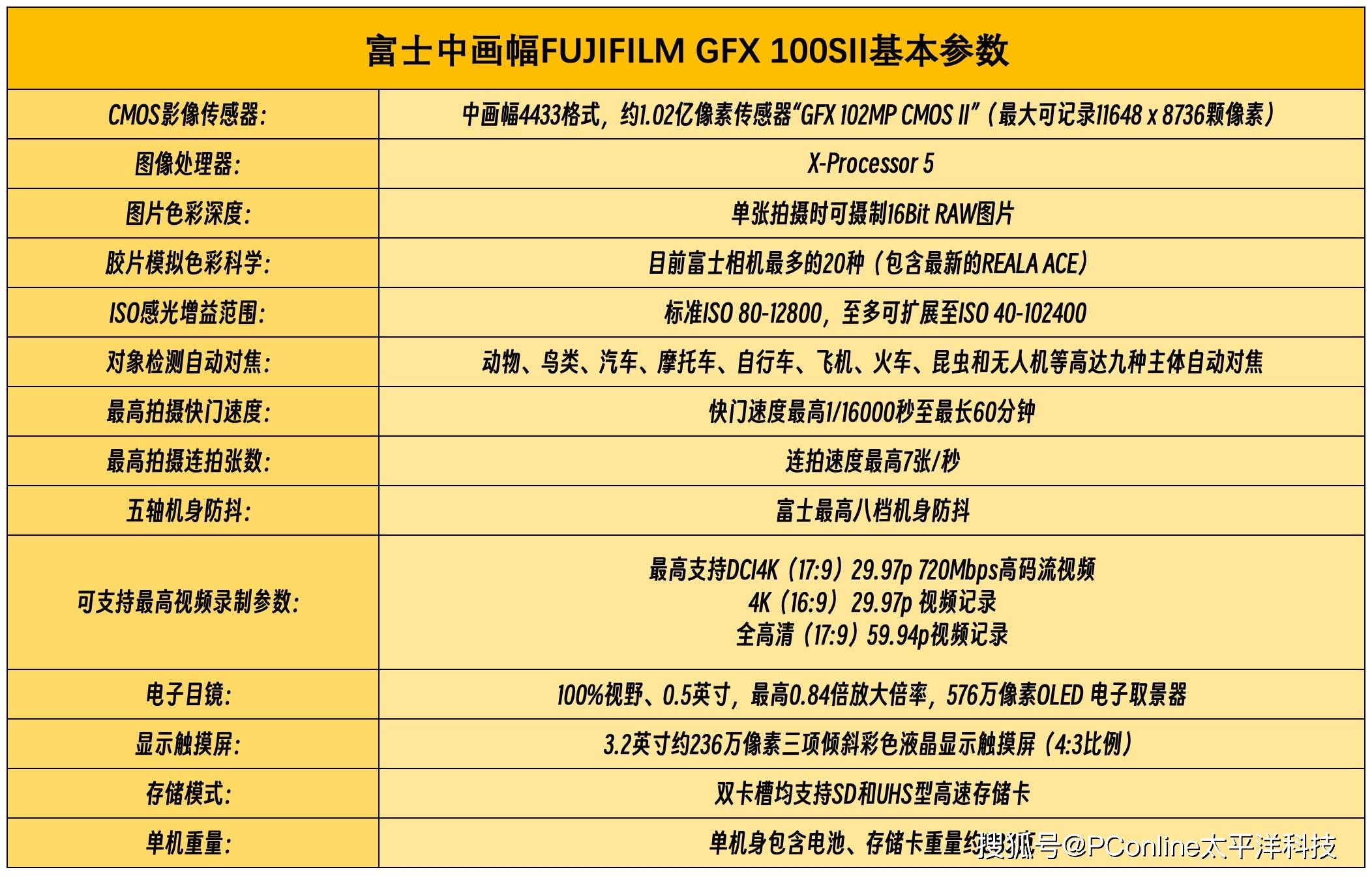 一如既往的,请大家和我们一起了解一下富士中画幅FUJIFILM GFX100S II基本性能参数: