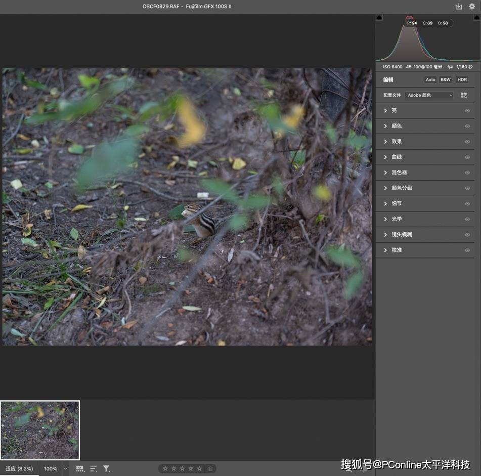 漫步林中,一定注意放慢脚步,并时刻观察附近的异动,说不定,就能看到栖息于此的“精灵”小跳着跑来。林下的阳光不比无所遮拦的草原环境,想要的得到清晰明亮的照片就一定需要推高ISO感光增益,而在许多,约定俗成的摄影刻板映像中,“更高的像素一定让高感噪点飙升”, FUJIFILM GFX100S II在这种情况下会表现如何呢?大家可以看看我们在ISO6400 时,在明显低光照环境下拍摄的小松鼠,来看看GFX100S II的画质表现如何!