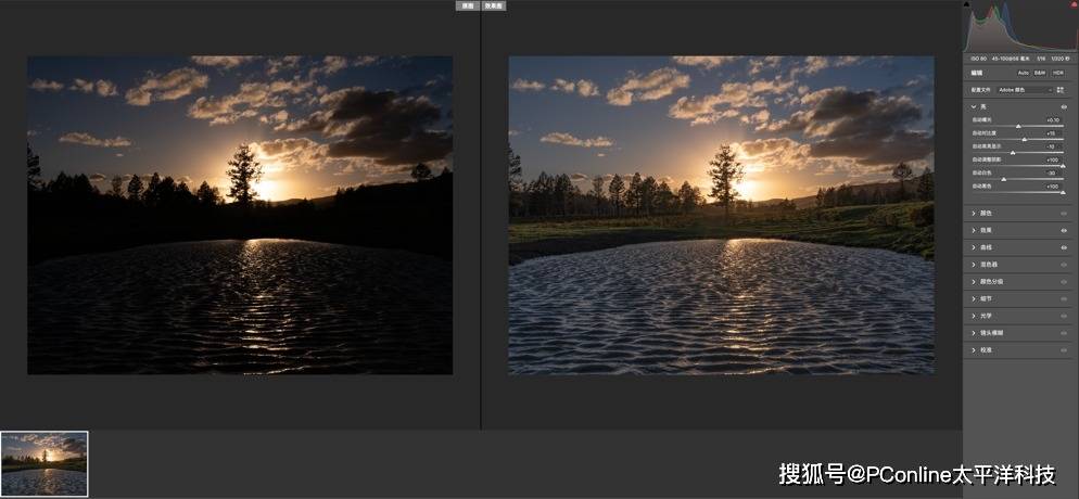 大家可以一起看看在FUJIFILM GFX100S II 在低光照时,使用高ISO来拍摄“伸手不见五指五指的黑暗”,画面纯净度表现如何(上文中的夜景星空)?当然,上图经过简单的后期。下图是逆光且大光比环境下,GFX100S II的静态图片宽容度实测示例,大家可以细致的观察天幕的色彩过渡,以及背光水面的成像刻画,不知道,大家觉得怎么样?至少PConline评测室的伙伴直呼“绝了!”