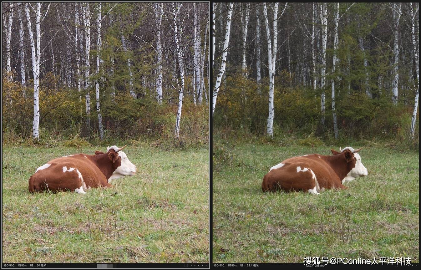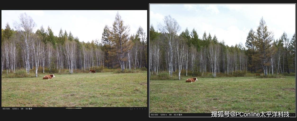 左侧为全画幅相机实拍,右侧为富士GFX100S II实拍