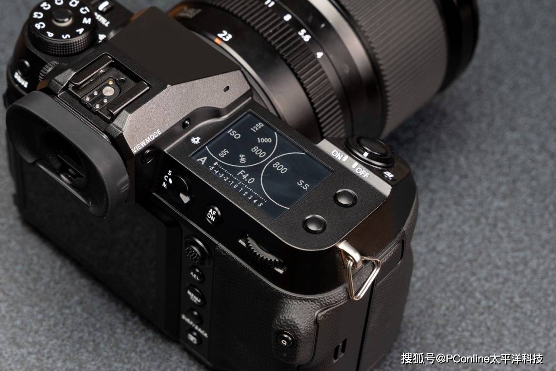 再来看看GFX100S II的右肩,与上一代保持一致,1.80英寸的单色液晶显示屏,有白字黑底和黑字白底两种模式切换,帮助你在不同光线环境下完成拍摄监看。在这里可以直观展示相机的拍摄参数,包含ISO、快门、光圈和曝光补偿等参数。旁边还有两枚“可自定义调整的快速功能调用按键” 可以在相机内将其设置为需要经常更换的功能设置,例如高速快门拍摄模式、白平衡调整、胶片模拟切换等。