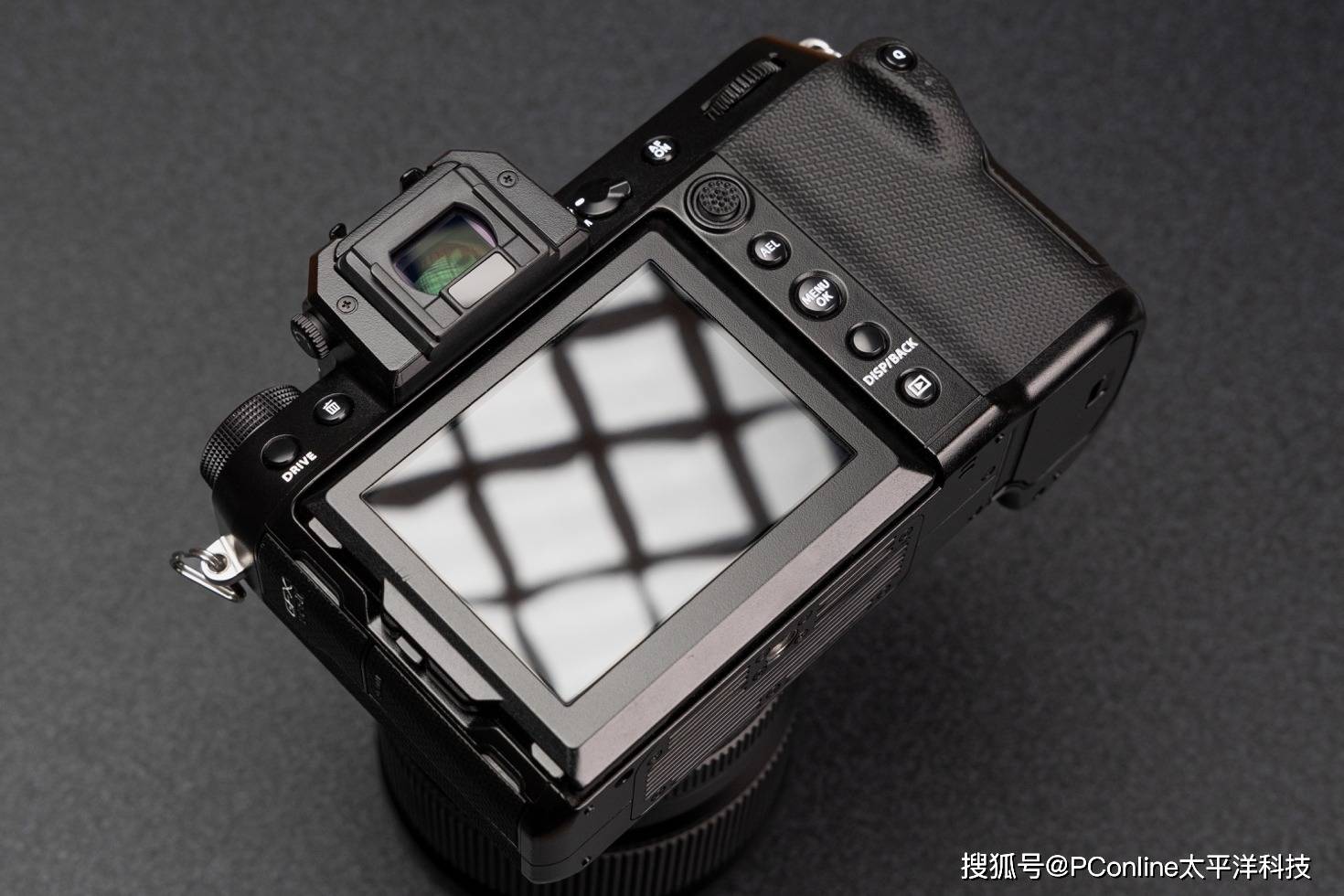 再来看看看富士GFX100S II的机身背面按键布局,机身背部设计元素与GFX100S相近,并不复杂,但是基本涵盖了大部分操控功能,左边为专项拍摄模式切换按键“DRIVE”,“垃圾桶”删除键。传统“Q”键可快速切换多种拍摄参数,通过MENU键进入菜单后,主次层级分明,稍加熟悉就能快速掌握这套菜单逻辑。比较遗憾的是,仍然不支持按键灯光,在光照极差的环境拍摄时,调整拍摄参数,需要额外的照明设备。