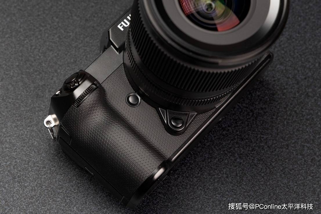富士GFX100S II的外壳模具相较上一代并没有太大的变化,富士胶片为GFX100S II采用了全新的BISHAMON-TEX皮革涂层,灵感来自日本传统设计中的三箭头图案,不仅改善了相机的外观感受,还保证了良好的触感,握持时的摩擦力适中,有助于确保握持的稳定。在机身体积重量控制上,富士GFX100S II做的非常好,是迄今为止最轻的GFX系统相机,与GFX 100S相比,工作状态的重量为883克,比较前代,在面对高强度的拍摄任务时,能有效提升拍摄舒适度和时长。