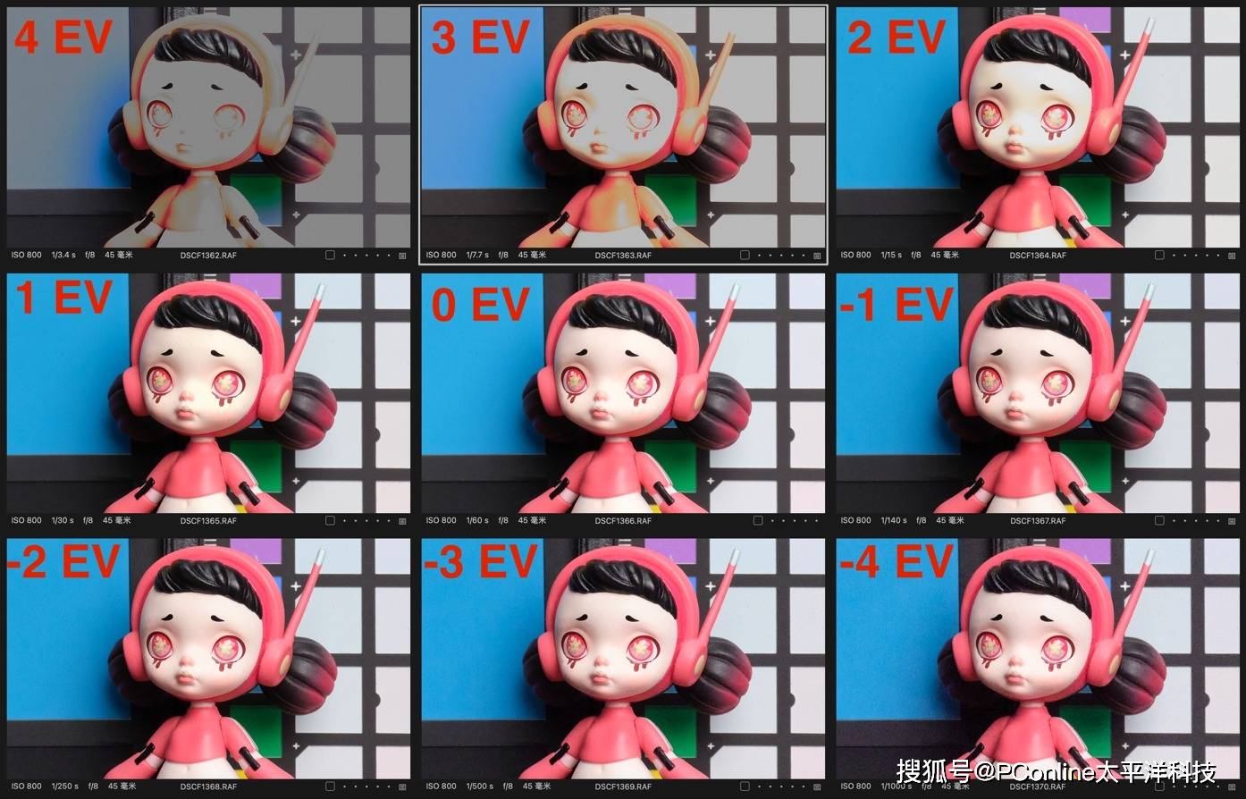 感光增减噪点测试后,我们再来看看一看富士GFX100S II的宽容度表现。这里我们采用置景和标靶实拍,须知,所有测试仅在“基于正常使用环境下的对焦点曝光0 EV状态下测试,并未采取实验室中反射补光面18度灰矫正在0 EV状态下进行测试;开启机身半自动模式,通光曝光补偿功能进行过曝和欠曝素材收集;在后期软件中进行反向还原对比测试,贴近消费者日常使用过的拍摄场景,仅提供参考意义”。