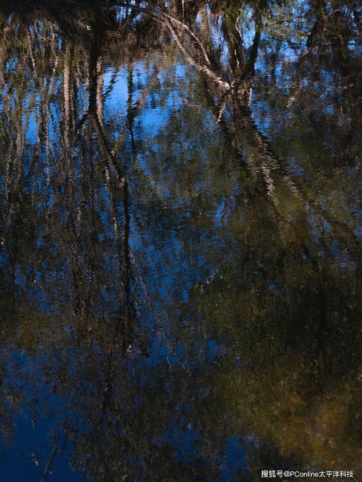 但在森林的实拍环节,可以明显的发现,覆盖天空的蓝色更加“迷人深邃”(更多短波蓝光被留在了云层中),而“温暖的阳光”斜射穿过树林,直白的展现色彩之美。
