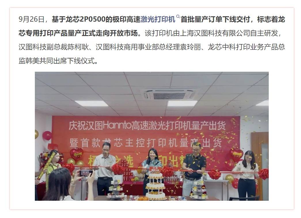 — 国内首款自主指令极印打印机搭载龙芯2P0500主控芯片量产出货 —