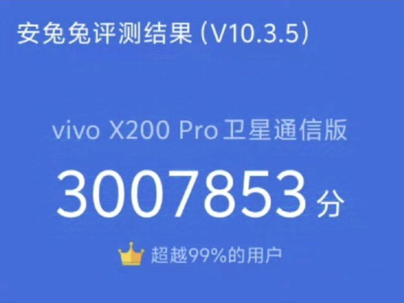 — 超300万!vivo X200 Pro卫星通信版跑分曝光 预计十月发布 —
