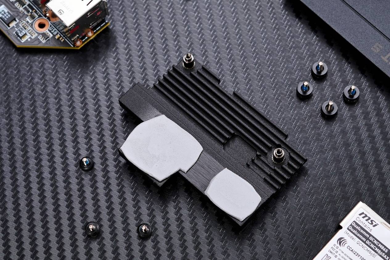 微星专门为ASM4242主控独立散热模块配备上导热垫与VRM散热模块接触,保证USB4接口在进行长时间的数据传输时也能更加稳定高效。