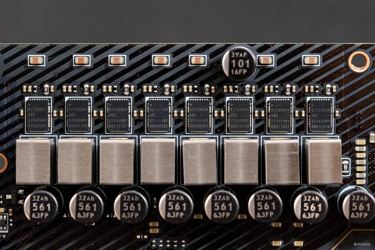 首先是整个VRM冰霜铠甲非常厚实,拿在手里沉甸甸的。并且其采用了纯金属设计,还用复合热管以及7W/mk高效能导热贴,覆盖了整个Mos管与电感,进一步保证性能稳定释放。