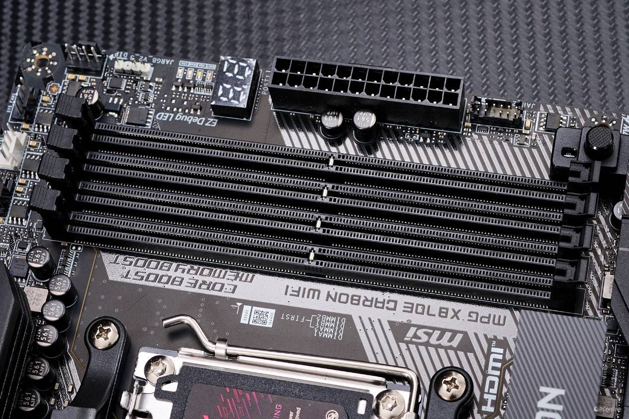 主板搭载了四条双通道DDR5内存插槽,最大支持容量为256GB,支持EXPO和XMP标准,最大OC标称频率为8400MHz。并且主板BIOS内还有众多微星Memory Boost技术,可将内存的性能实现跨越式提升,后面的测试我们也会提到。