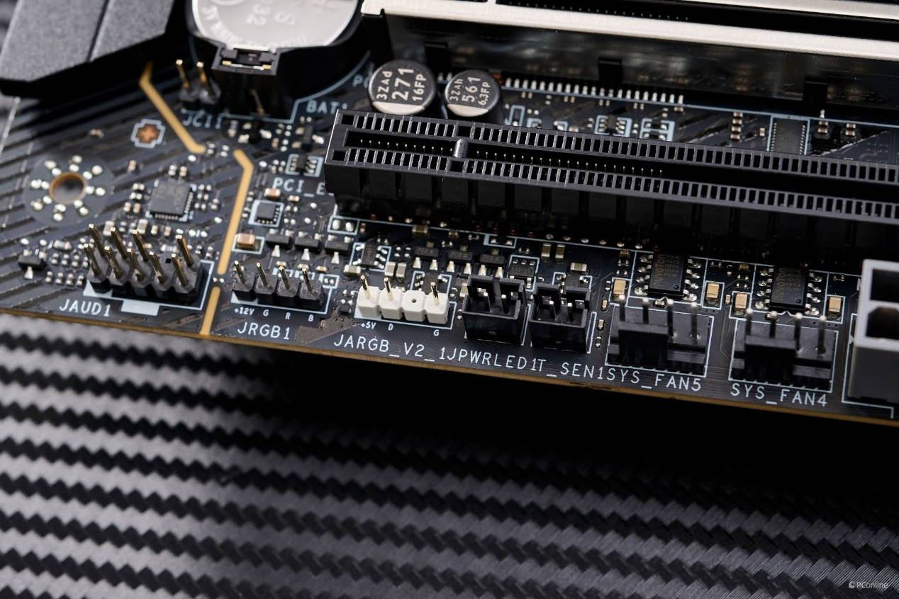另外,微星这次还新加入了一个风扇接口,与其说是风扇接口,倒不如说是风扇PWM供电灯光USB三合一接口,主板上的命名为JAF_2,旁边还有”EZConn”的标识。安装时只需要配件里的三合一线就能实现一根线完成全部操作,有一说一,这种设计不仅新颖,还大大降低了玩家理线的难度。