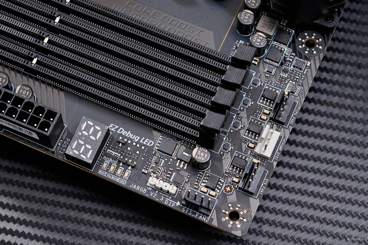 除此之外,我们在拆解过程中也发现了微星MSI MPG X870E CARBON WIFI暗黑主板还有不少精心的小设计,例如主板上配有EZ Debug LED,平时它能够显示处理器温度,超频失败时它能够提供相应的代码,好让玩家清楚的知道硬件状态。