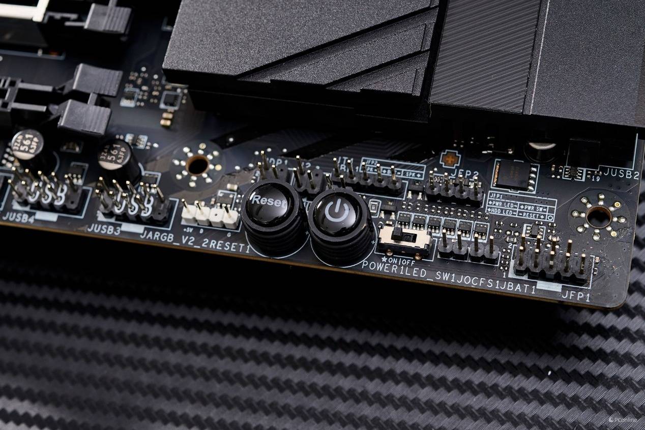 最后再给大家展示一下主板上电的效果,刚通电,主板的精致感就来了,纯黑色的马甲与PCB彰显其浓厚的电竞风格。