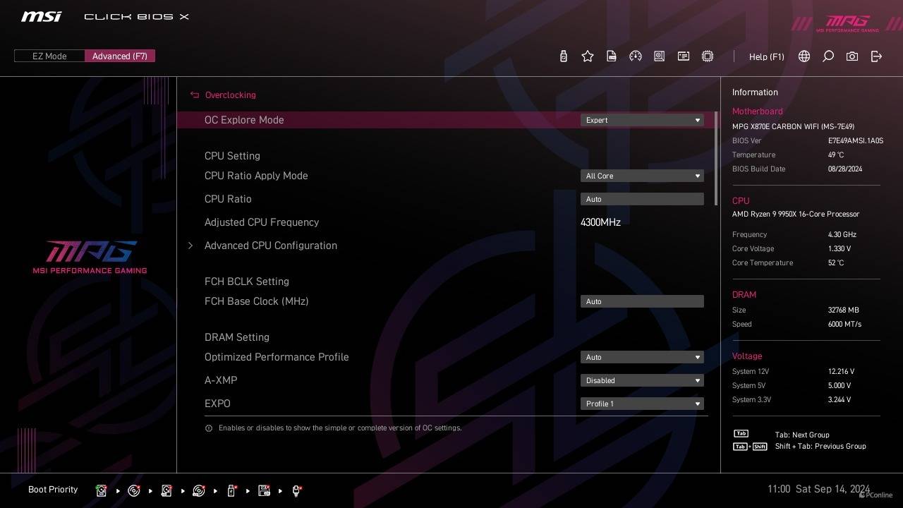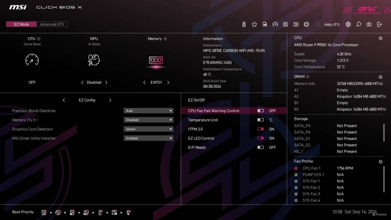 虽然外观变化,不过操作逻辑还是一样的。简易模式下,EXPO、PBO、开关核显等功能都直接放在了显眼的位置,玩家能够轻松控制。而按F7则可以进入高级模式,这里能对平台进行更多自定义设定。
