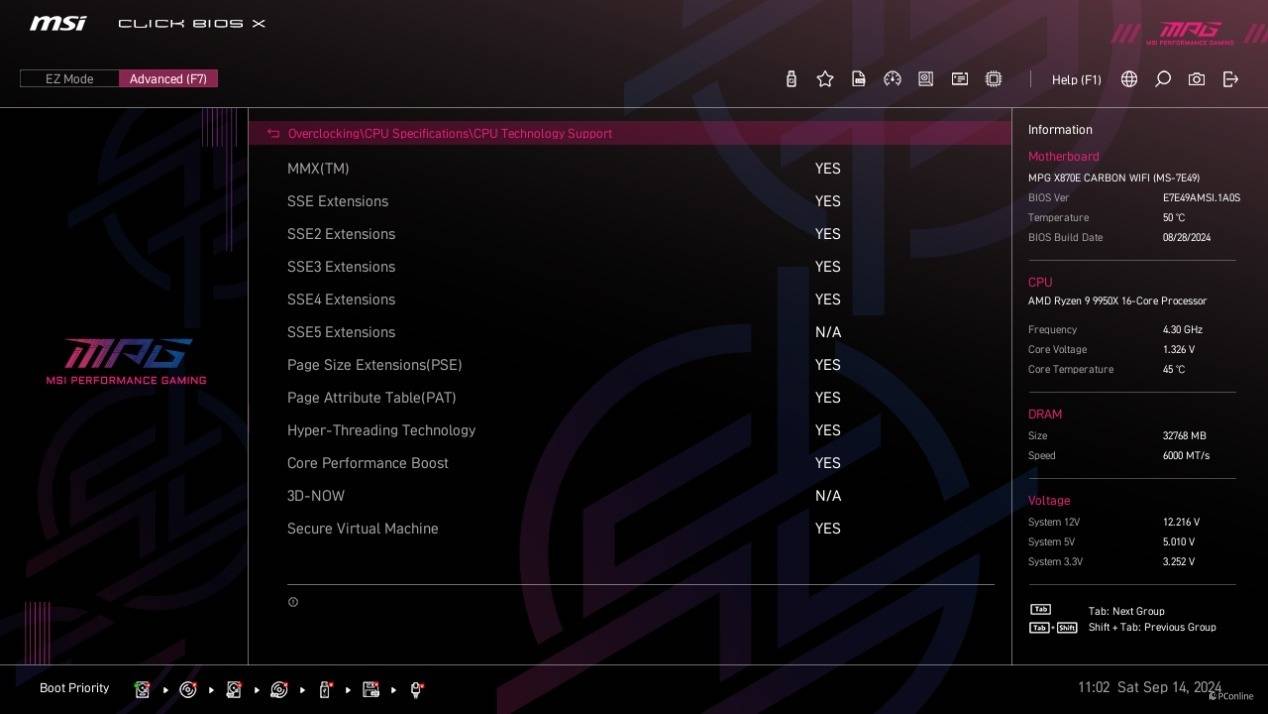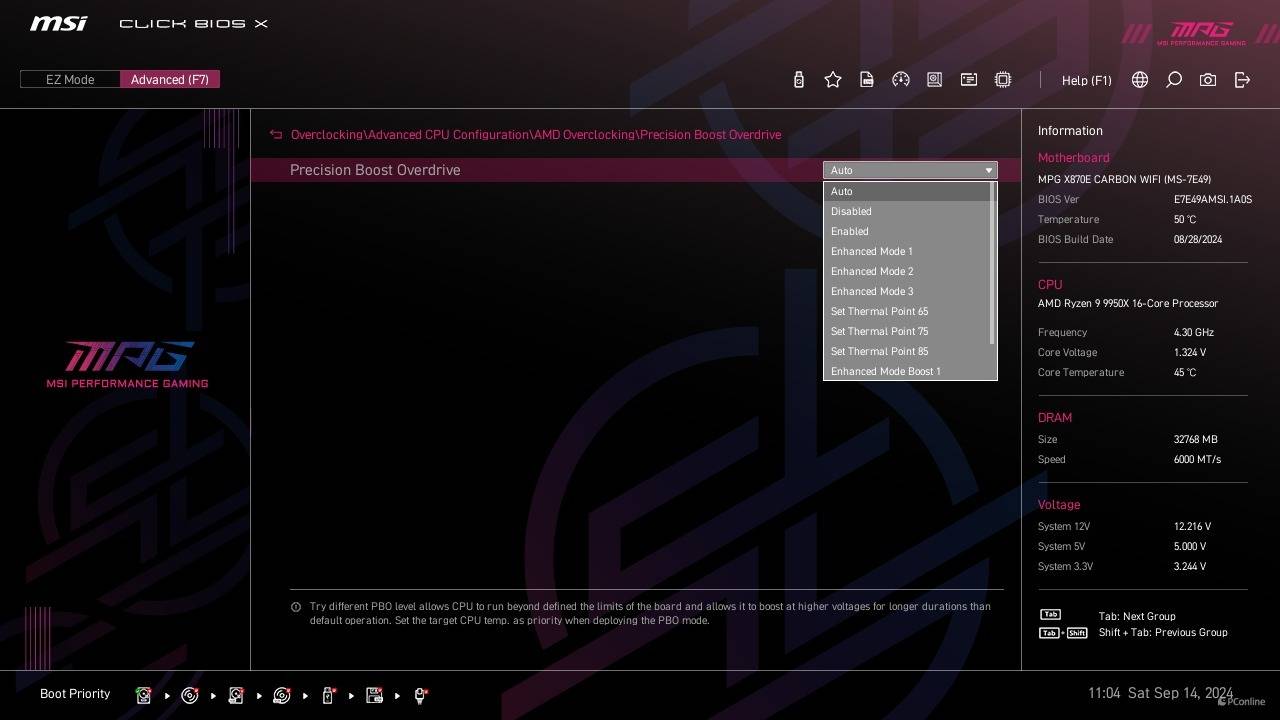 另外,微星MPG X870E CARBON WIFI暗黑主板上还有一个PBO 增强模式,据微星说,PBO 增强模式可以在 AMD 原有 Precision Boost Overdrive(PBO)基础上进一步优化处理器,从而实现了更好的性能,锐龙 9000 处理器可获得 3~15% 的性能提升。