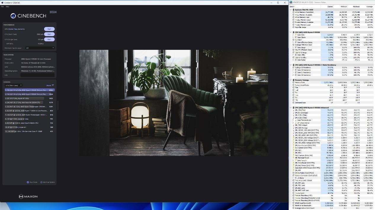 而在CineBench2024里,这套平台同样有不俗的表现,R9-9950X处理器的单核为137 pts、多核为2065pts,MP Ratio为15.04x。