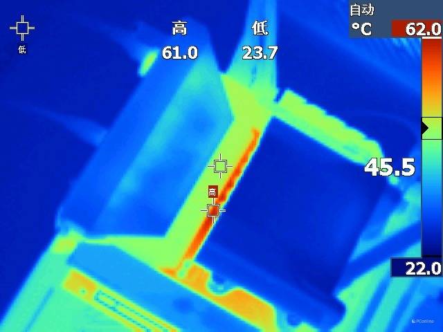 同时我们也用热成像仪对主板表面的散热装甲进行测试,实测FPU烤机时,微星MSI MPG X870E CARBON WIFI暗黑主板的供电模组最高温度只有62℃,不得不说这款主板的堆料真的狠,未来X3D版本的锐龙9000系处理器来了,也是轻松压制。