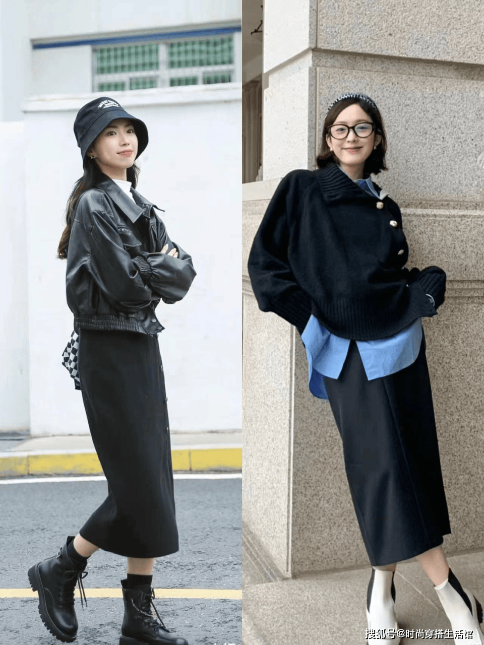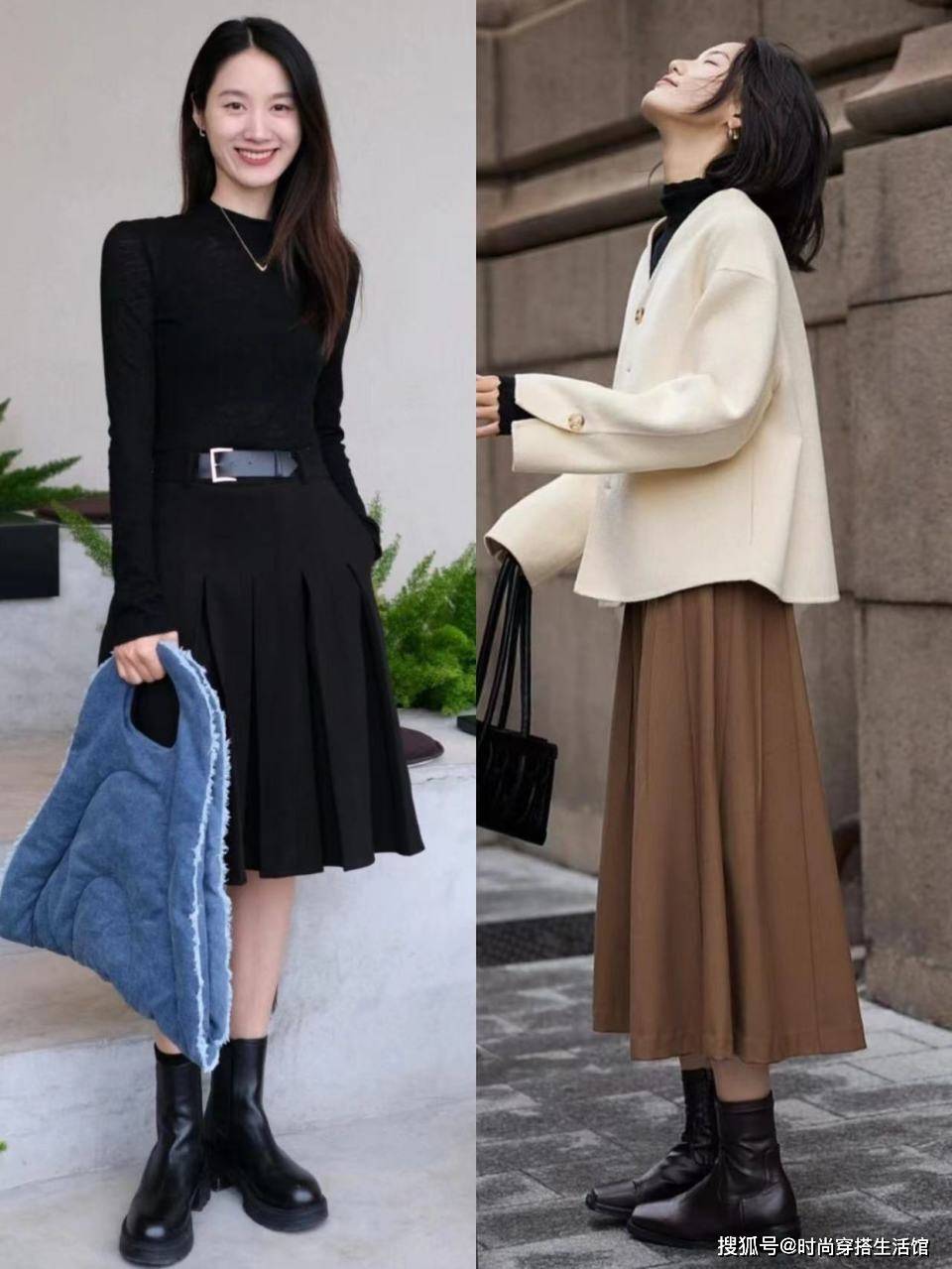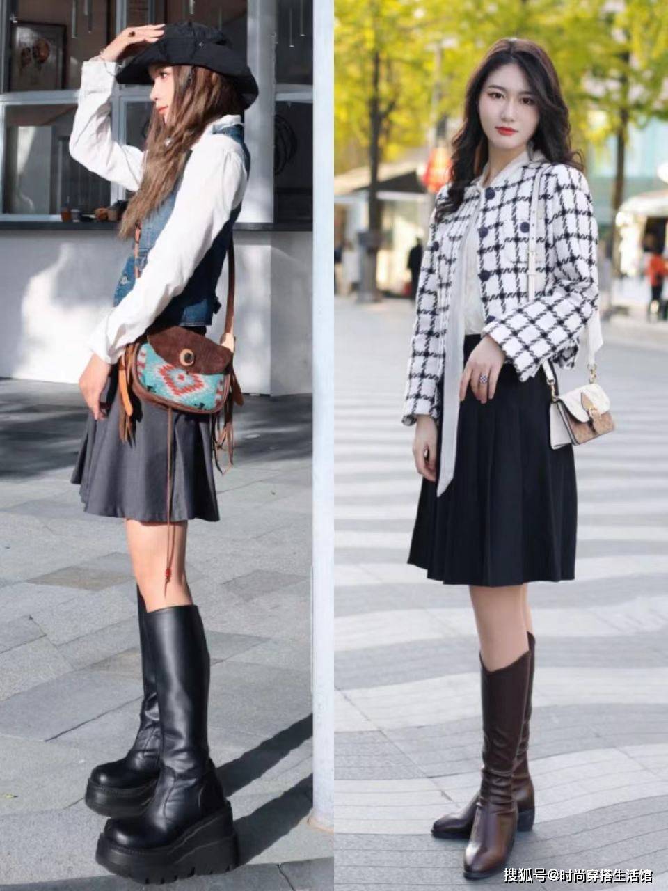 — 国庆去了上海才知道,会穿的女人都爱“裙子+靴子”,洋气又显高 —