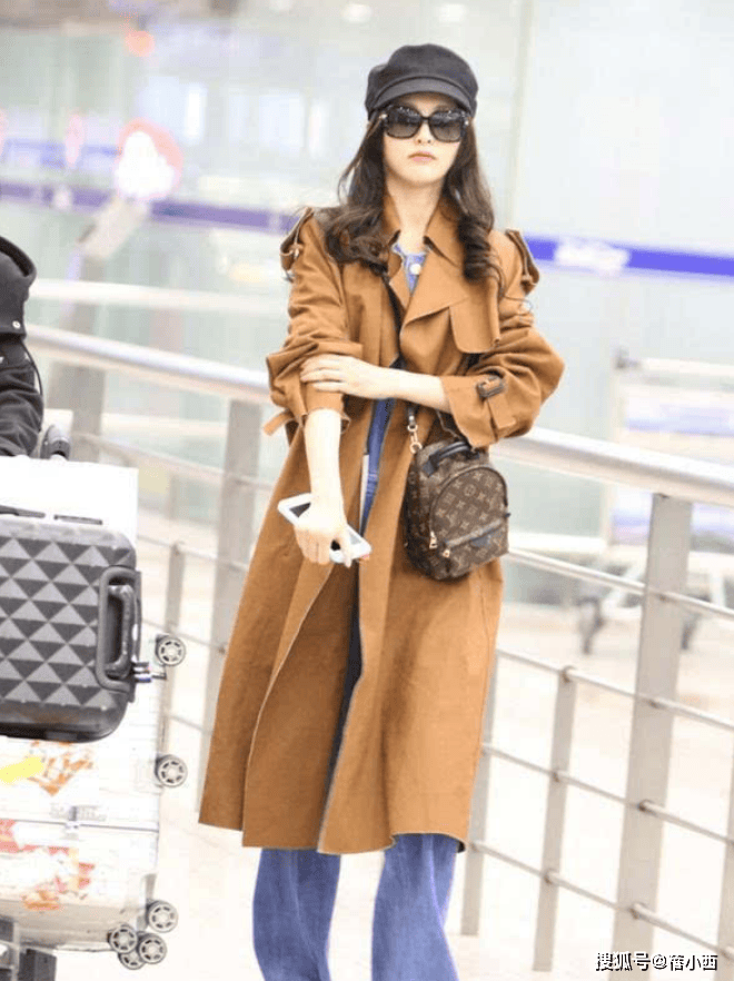 — 唐嫣又带火了美拉德新穿法:长款风衣+牛仔裤+报童帽,高级又洋气 —