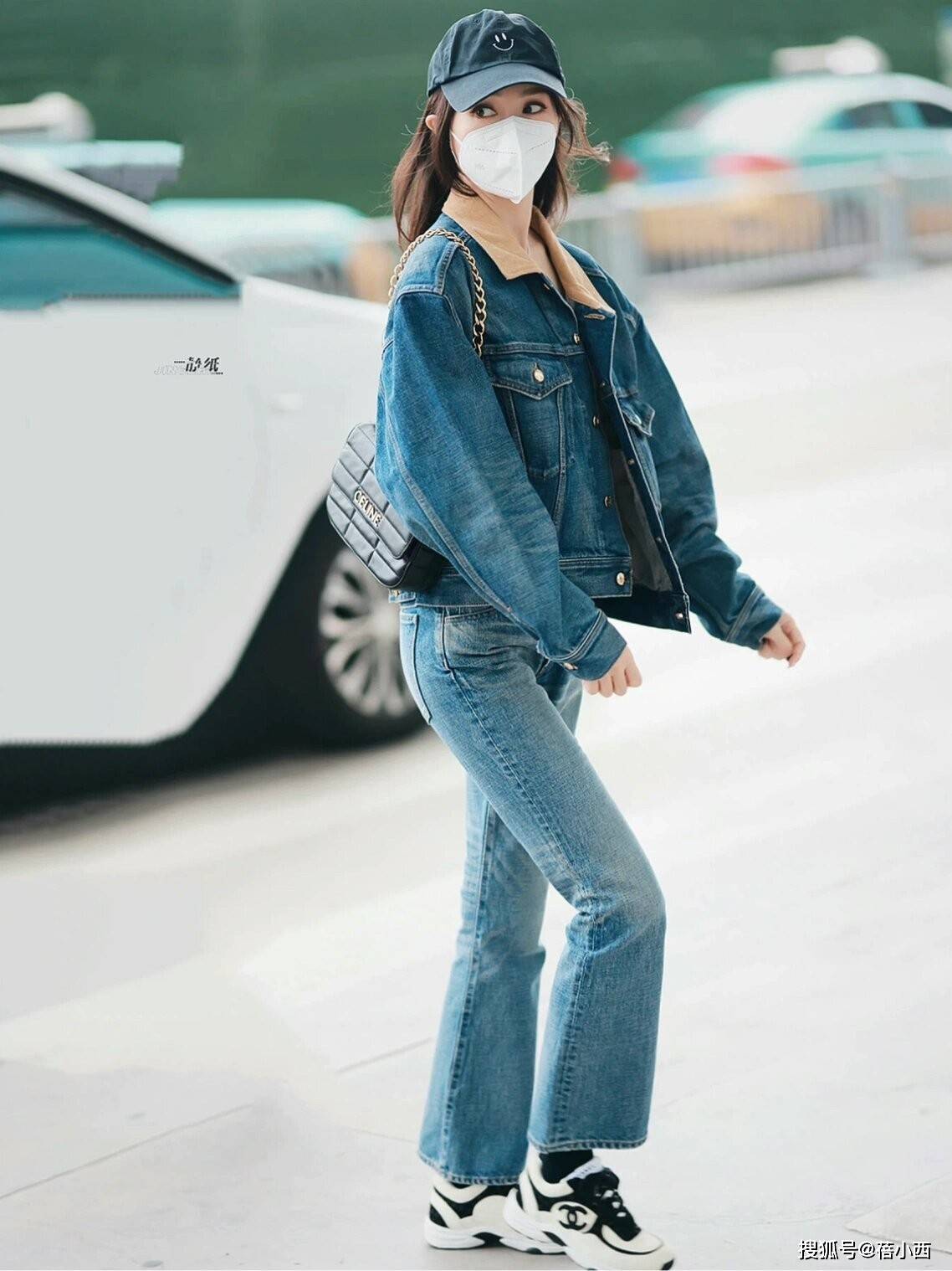 - 街拍:牛仔裤好看又百搭,搭配一字肩上衣很经典,百搭时尚