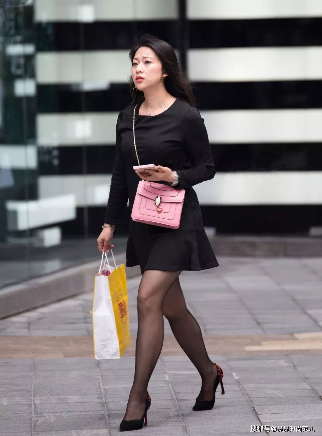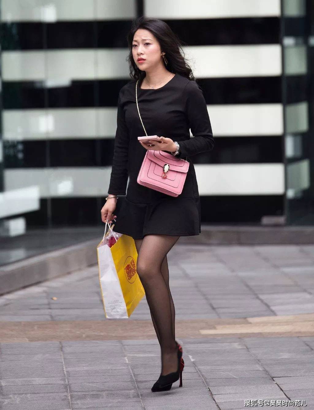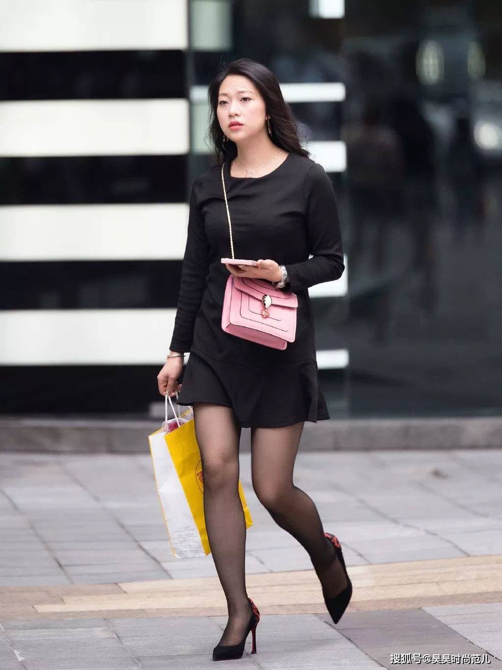 — 气质女孩的秋日穿搭,简单的黑色连衣裙搭配高跟鞋,优雅时尚有范 —