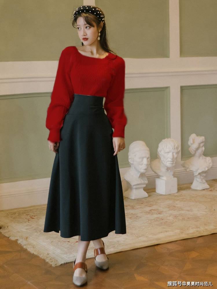 — 今年秋天的时尚穿搭,温柔舒适的毛衣搭配半身裙,减龄又显气质 —