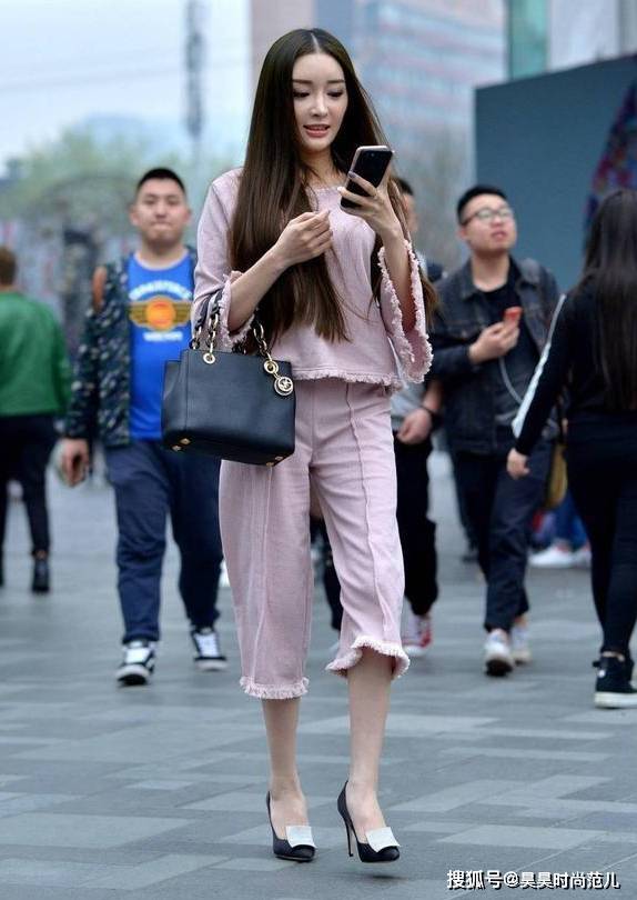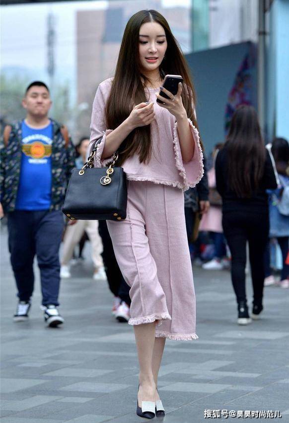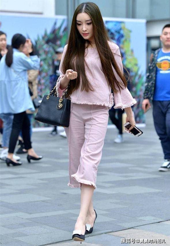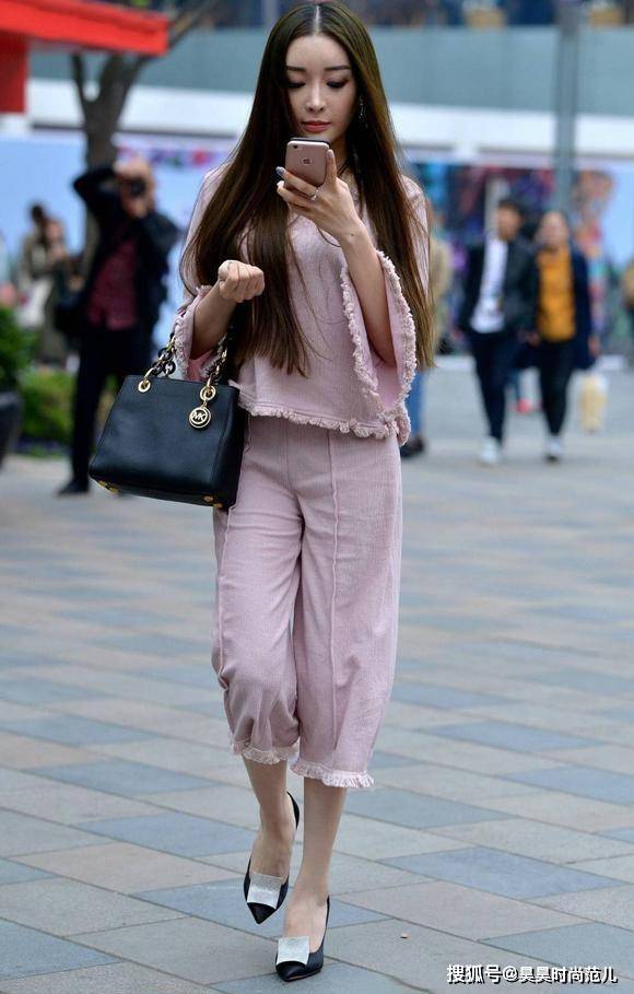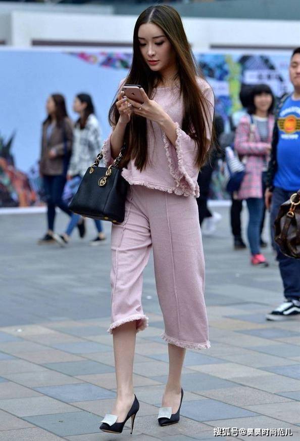 — 气质女孩的前卫风穿搭,喇叭袖上衣搭配穿反的七分裤,个性又时尚 —