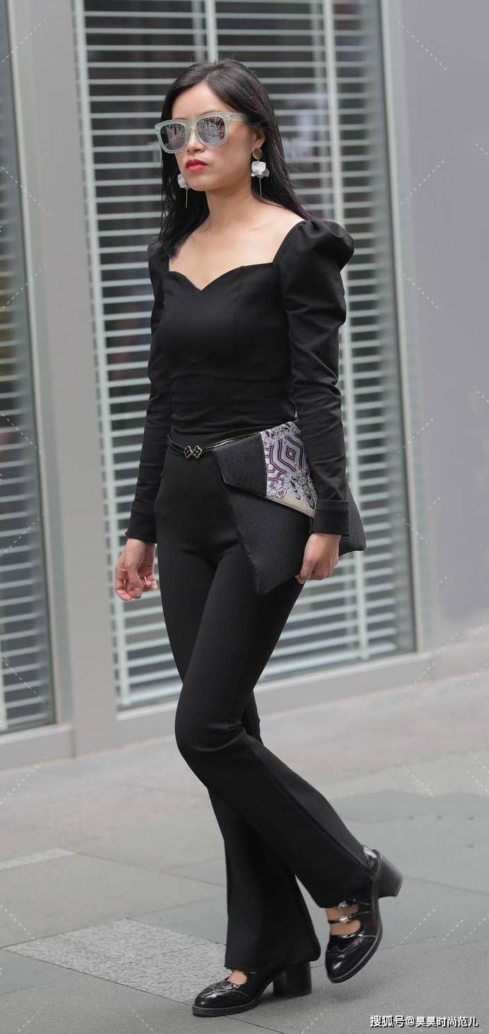 - 街拍:牛仔裤好看又百搭,搭配一字肩上衣很经典,百搭时尚