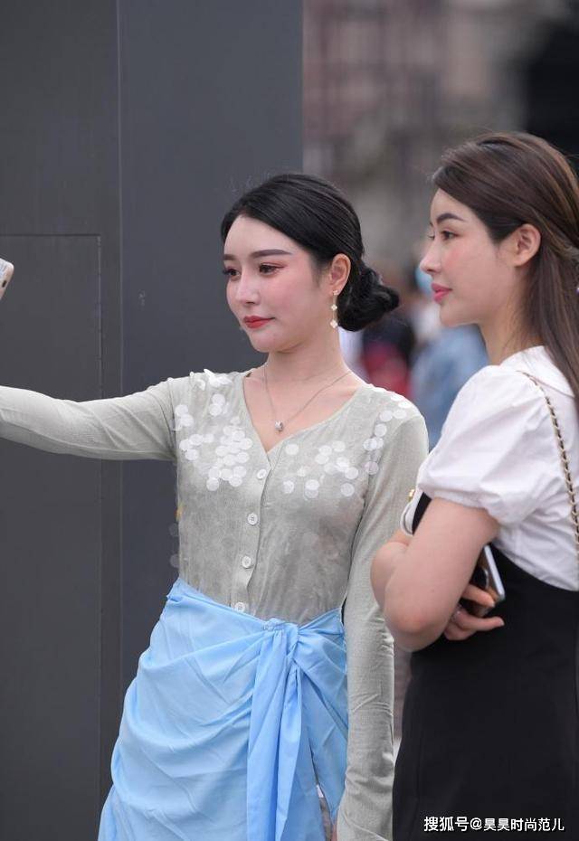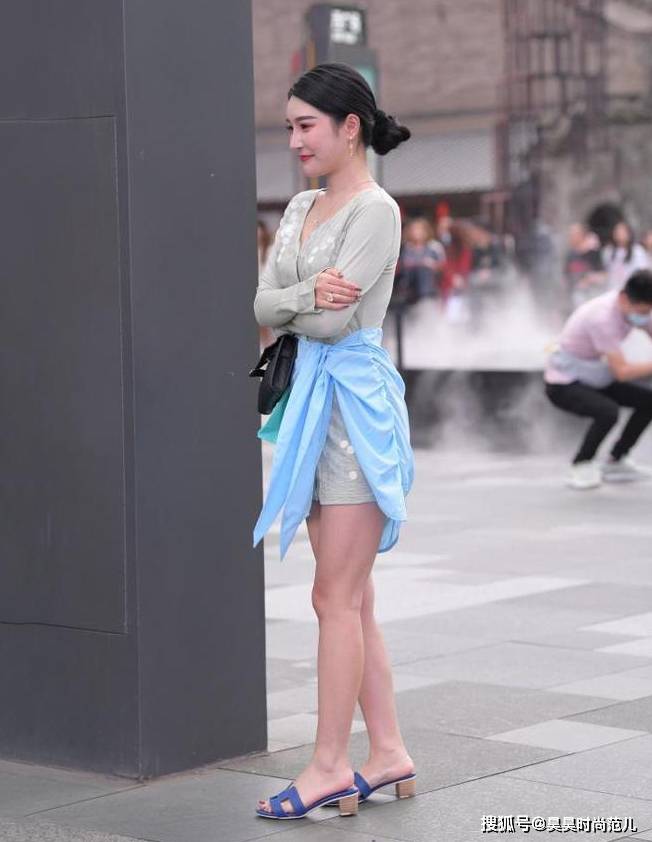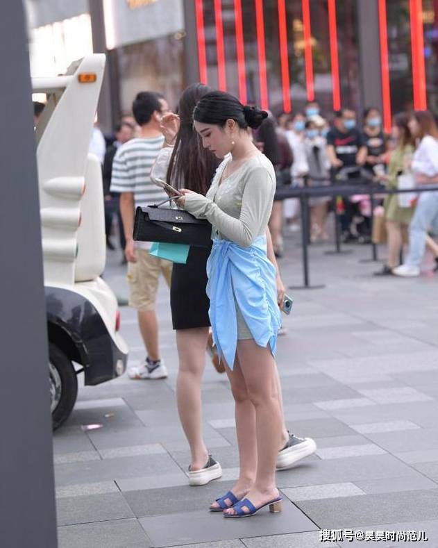 — 夏末初秋的小心机穿搭,亮片连衣裙搭配蓝色衬衫,个性时尚显气质 —