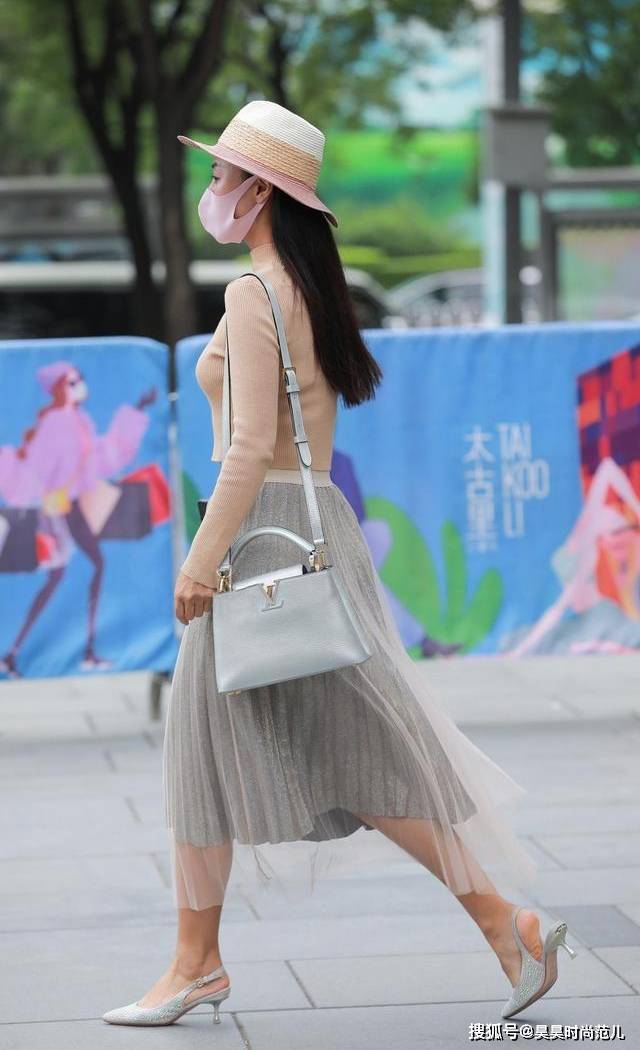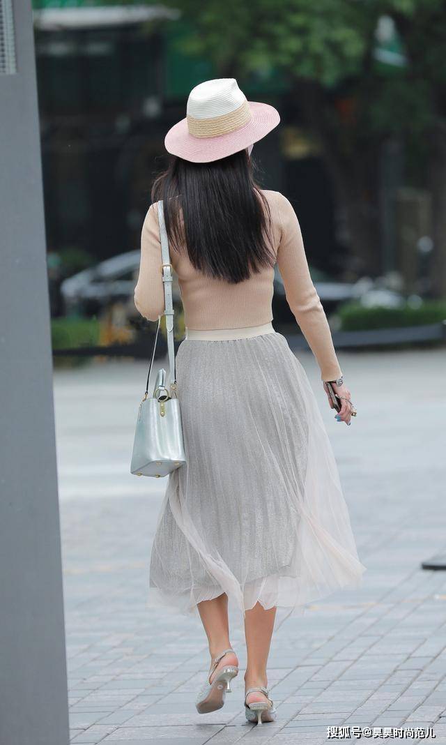 — 微凉秋日的时尚穿搭,薄款针织衫搭配高腰半身裙,简单优雅显气质 —