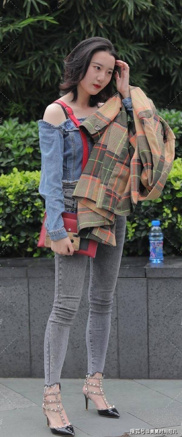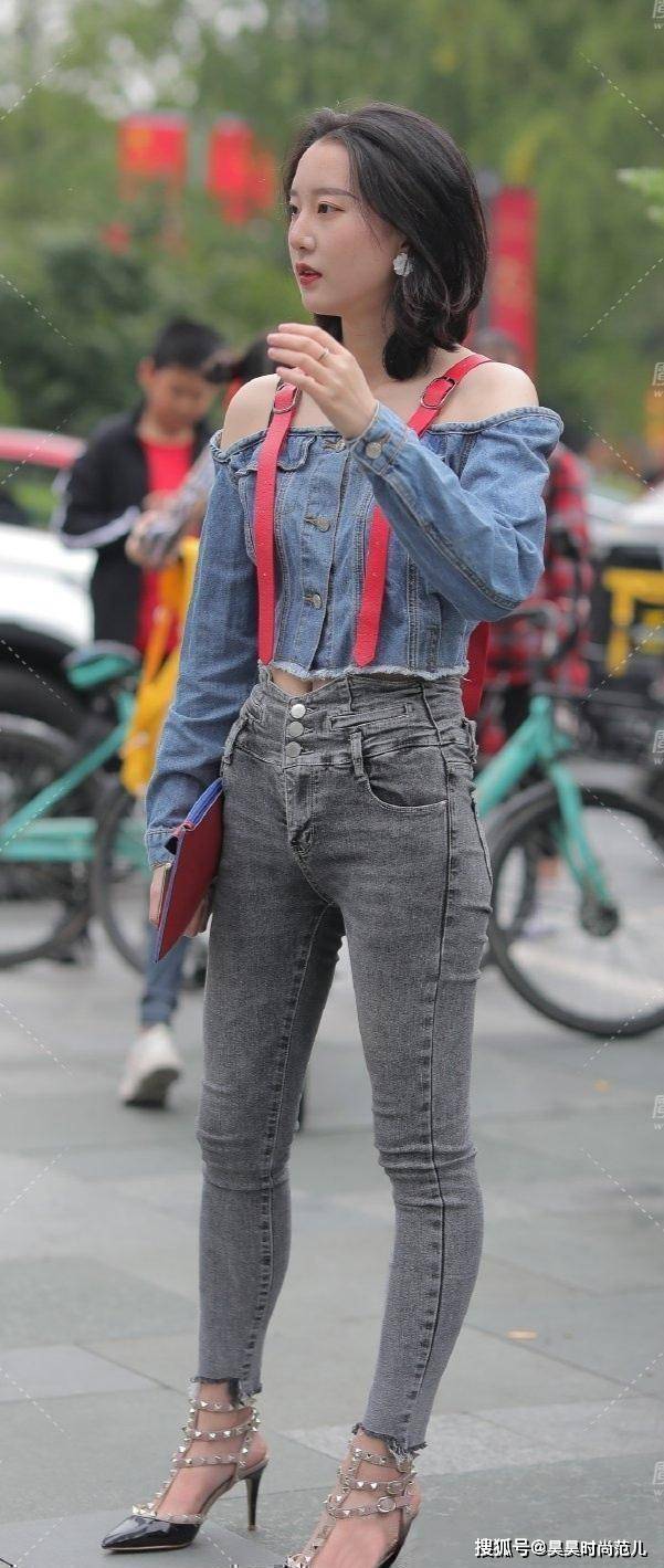 — 秋天来了,时髦背带短外套搭配高腰牛仔裤穿搭,简单时尚又有个性 —