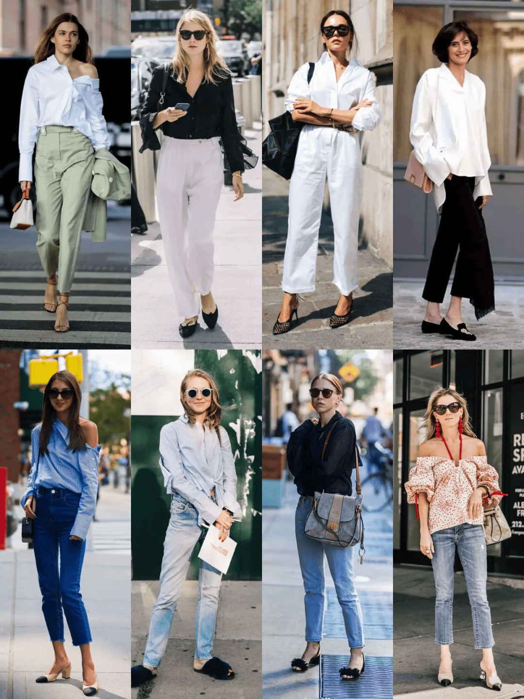 - 街拍:牛仔裤好看又百搭,搭配一字肩上衣很经典,百搭时尚