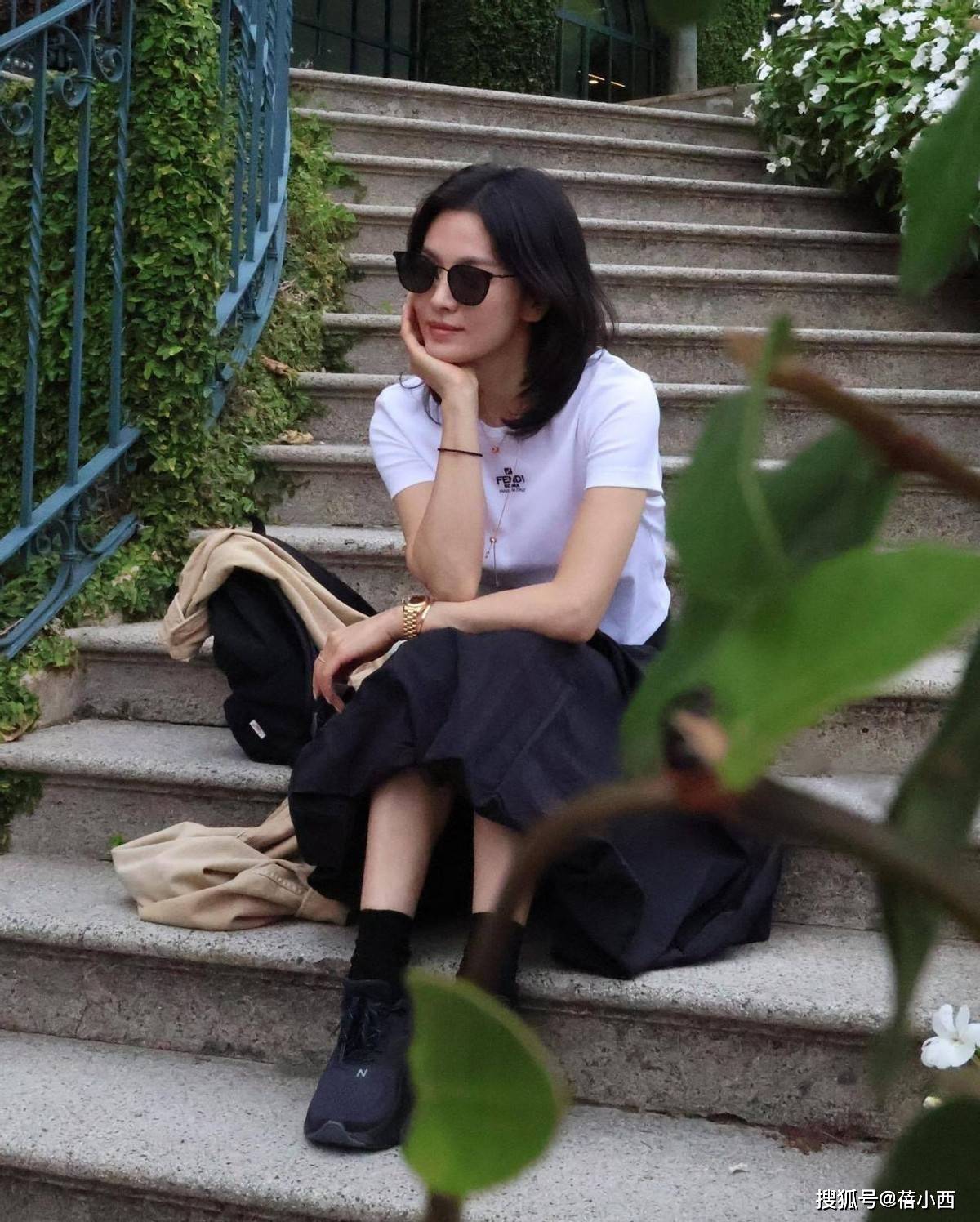 — 42岁宋慧乔度假照曝光!穿短外套+白T恤+半身裙,嫩得像个小姑娘 —