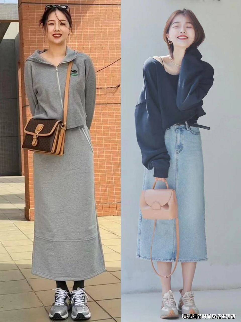 — 今年火了一种穿法叫:“裙子+运动鞋”,洋气显高,适合小个子穿 —