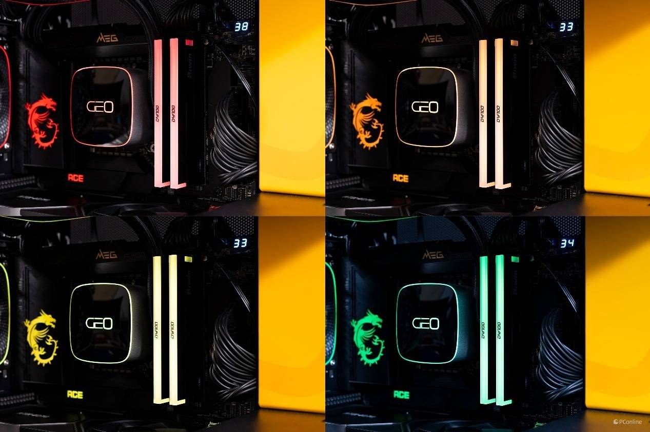 另外,这款内存还支持各大主流主板厂商的灯效控制软件,可通过相应的软件进行灯光调控,一键实现灯光同步的效果。看下图就知道了,所有灯光统一时,又是一种特别的观感,灯控玩家千万不要错过。