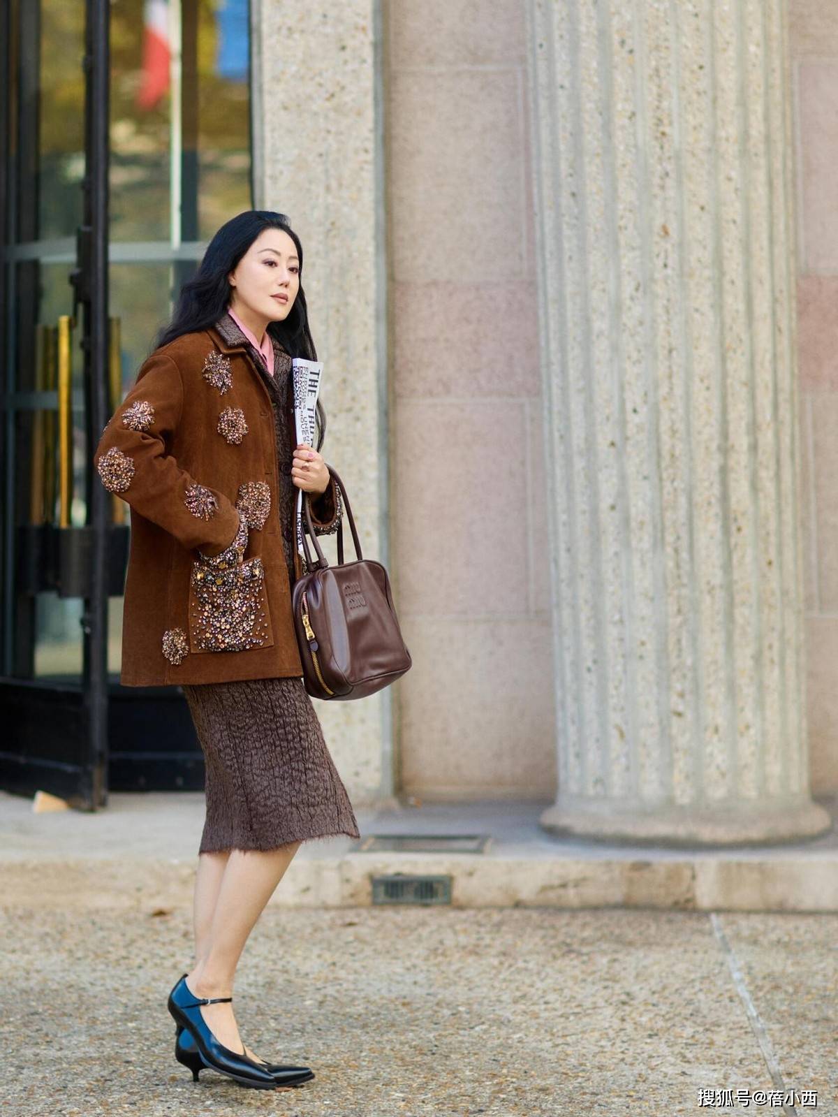 — 61岁章小蕙又带火了美拉德穿搭:贵妇外套+针织裙,显贵又洋气 —