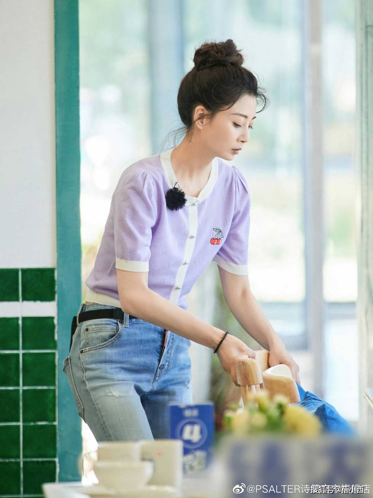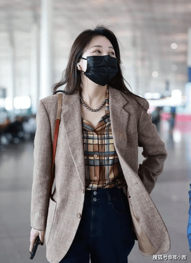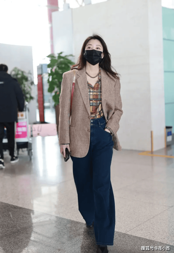 — 44岁殷桃为显腿长好认真,穿西装+牛仔阔腿裤,穿出175气场好惊艳 —