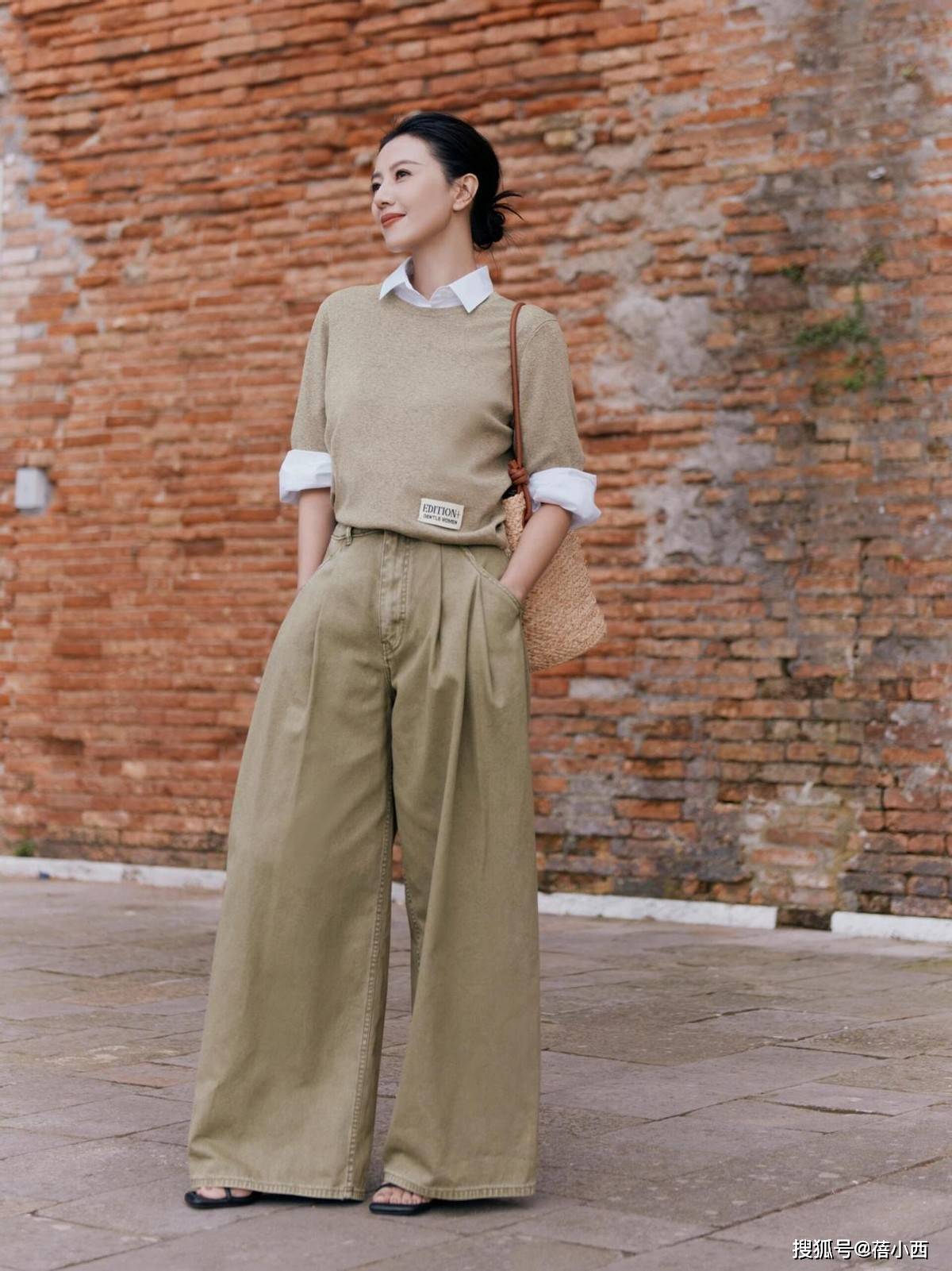 — 高圆圆带火了一种时髦穿搭:针织衫+衬衫+拖地裤,高级洋气又保暖 —