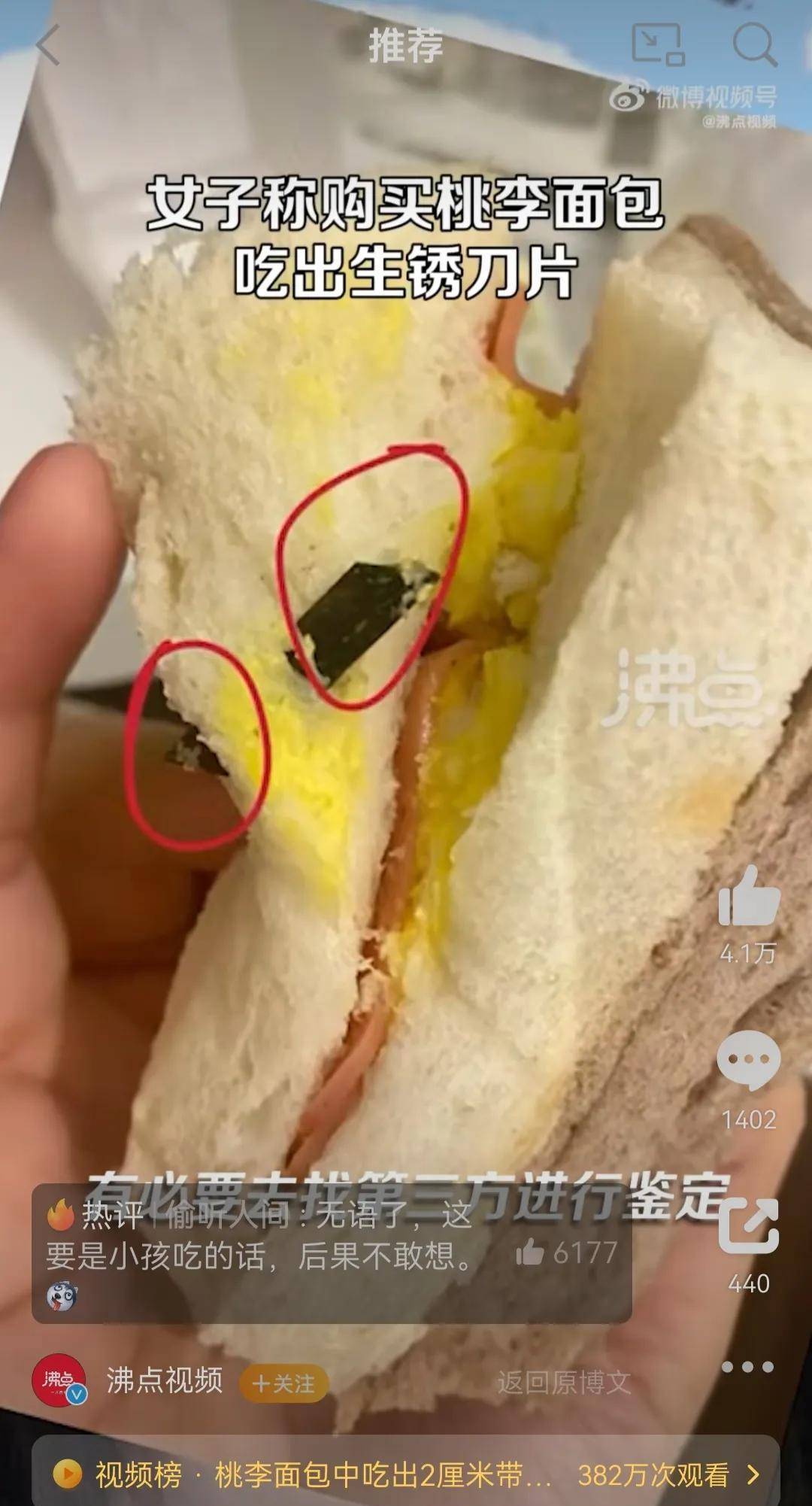 — 桃李面包中吃出2厘米带锈刀片 商家神赔偿:新品让你第一个吃 —