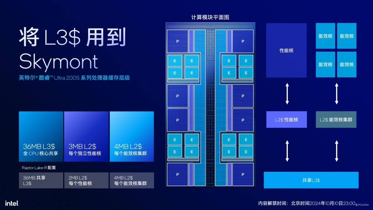 并且英特尔酷睿Ultra 200S系列处理器的E核集群(4个E核)还能共享使用L3缓存,实现高速数据交换,这一点也是与Lunar Lake最大的不同。