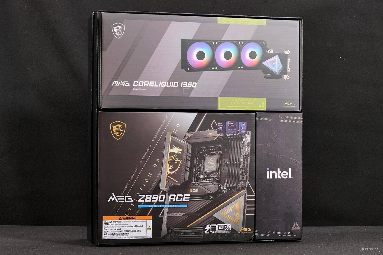 酷睿Ultra 200S处理器介绍完毕,下面就该上硬菜:微星MEG ACE媒体送测套装,包括:微星MEG Z890 ACE战神主板、英特尔酷睿Ultra 9 285K处理器、Kingston FURY Renegade DDR5-8200 C40(CUDIMM)、MAG CORELIQUID I360一体水冷、LGA1851偏移扣具,以及微星定制的CPU安装工具。