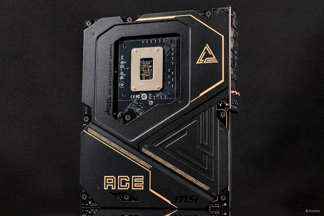 翻过背面,依旧是旗舰级主板的用料,微星MEG Z890 ACE战神配有完整的背部装甲,有效增强主板的刚性,并且正面的黑金设计风格以及斜切线条同样延续到了后面,四周还有巨大的金色ACE Logo作为装饰,辨识度拉满。