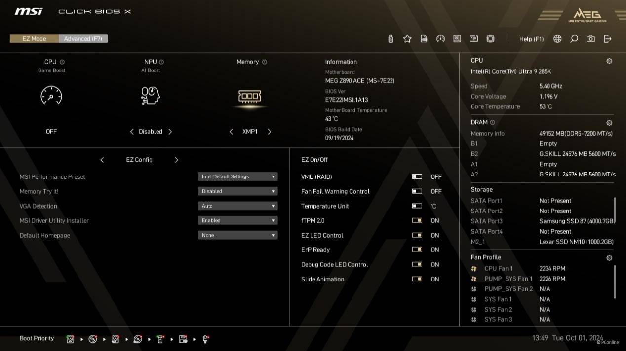 软件层面,这代微星MEG Z890 ACE战神也有重大升级,最直观的就是BIOS页面全面更新,相比原本的风格,如今的设计更加有科技感,并且延续了MEG系列独有的黑金奢华配色。