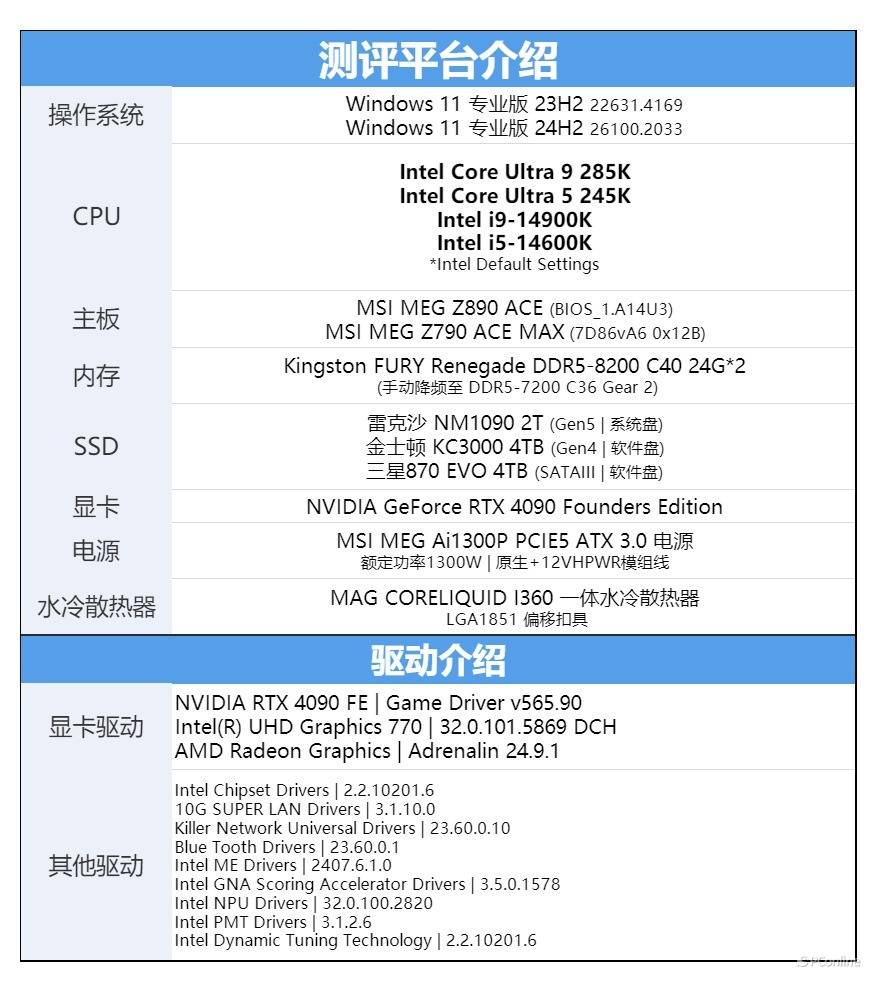 这里我们先来说一下,在微软发布Windows 11 24H2之前,测试就已经正式开始。因此大部分测试环境是基于Windows 11 23H2完成,后期重新利用微软官方工具U盘安装Windows 11 24H2之后再进行英特尔酷睿Ultra 200S处理器专项测试,之后我们也会单独给出两个系统之前的性能差距,但Windows 11 24H2配合上新处理器与主板新BIOS,造成系统不稳定、测试时问题较多,需要多次重复测试等,耗时较长。至于驱动方面,我们优先使用的是英特尔官方提供的内测版本驱动,其次是微星主板中提供的U盘内置驱动。同时测试所使用的测试程序保证是同一个版本,包括PCMark 10,UL Pocyon、GeekBench、Office软件,以及Adobe软件及配套测试脚本程序等。