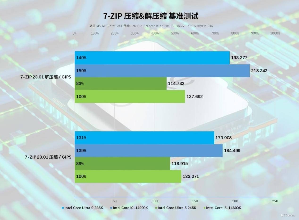 7-Zip则一般用于测试处理器的解压缩能力,这项测试一般与处理器的核心数、线程数相关。不过众所周知,这代处理器取消了超线程技术,因此在这方面上性能还是有所降低的,不过实际降幅其实不算大,满足玩家的日常使用绝对不成问题。