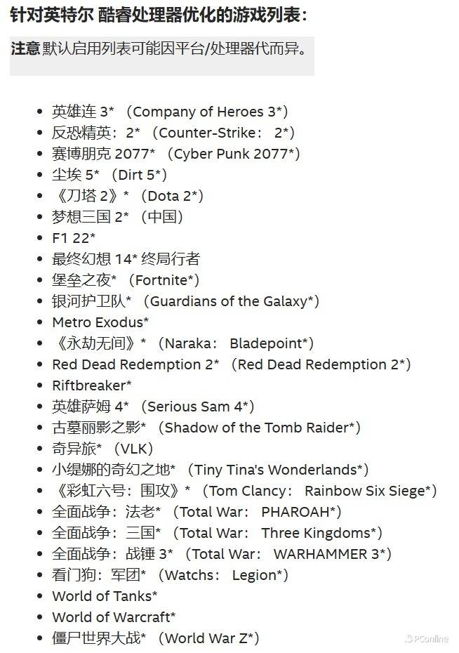 言归正传,APO是一项基于Thread Director的技术,是动态调优技术(DTT)的扩展,其搭配 Windows 11操作系统,可以一起负责不同类型内核之间的负载分配。举个例子,从12代酷睿开始,Intel在高端处理器上引入大小核设计,这种设计可以加强多线程性能,不过游戏过程中,小核的意义不大,因此APO在不需要单个E核时便会将其禁用,而在需要更多线程时又会启用部分E核。