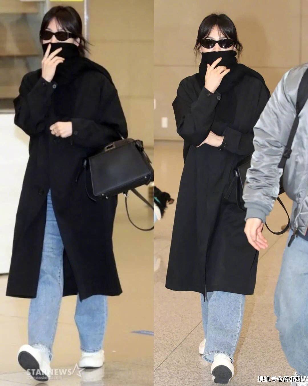 — 看了宋慧乔的穿搭,我悟了:黑色大衣+阔腿裤、牛仔裤,才更时髦 —