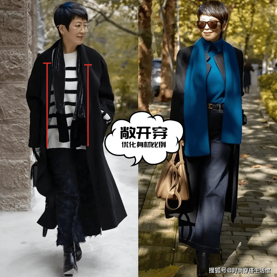— 五六十岁女人,穿大衣尽量少配卫衣、打底裤,换成这样打扮更得体 —