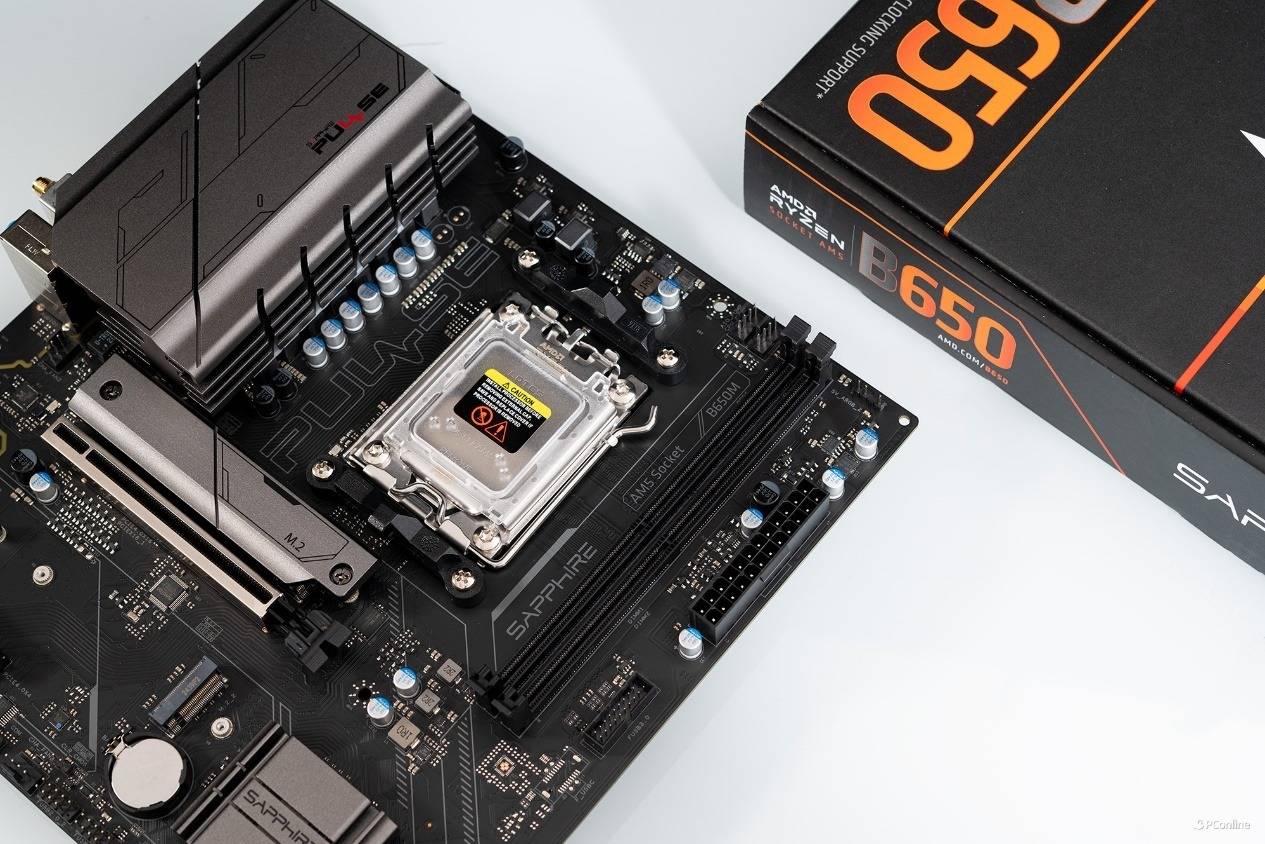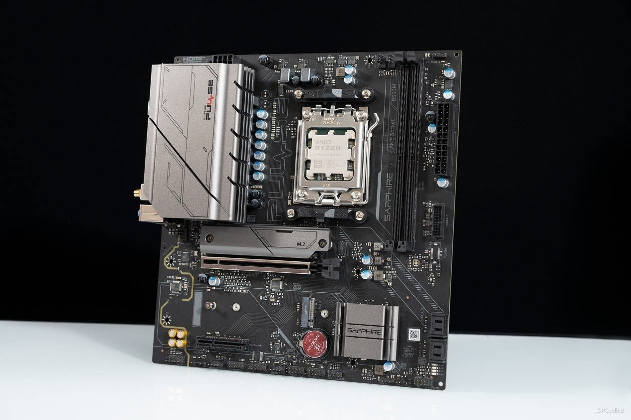锐龙9000上市已经有一段时间了,随之一起上市的还有AMD旗舰级的X870及X870E主板,不过旗舰级主板唯一的缺点就是贵。而定位中端主流的新一代B850主板又迟迟未到,选择R7-7700X甚至R7-9700X一直没有合适的性价比选择。得益于这两代处理器都是AM5接口,因此上代主板其实也能带动锐龙9000系。为此,蓝宝石在近日继续扩充AM5产品线,带来了全新的蓝宝石 Pulse 脉动 B650M WIFI主板,让主流玩家也有高性价比的选择。