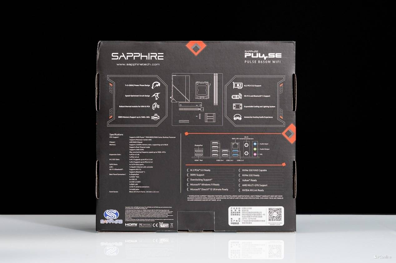 别看蓝宝石 Pulse 脉动 B650M WIFI主板只是定位中端,实际上它的配置一点也不含糊,AM5接口、PCIe 5.0、DDR5,这些堪称战未来的一次性给到你,可以说是目前最具性价比的AMD装机主板。至于它能否应付得了锐龙7000系处理器甚至更强悍的锐龙9000系以及更高频率的DDR5内存呢?下面我们一探究竟。